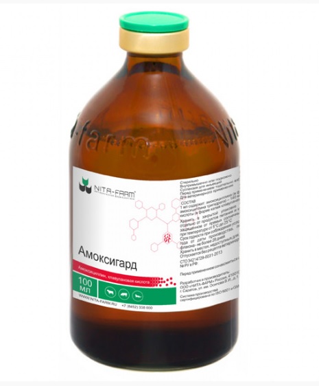 Убой крупного рогатого скота на мясо разрешается не ранее, чем через 42 суток, свиней не ранее чем через 31 сутки после последнего применения Амоксигарда®. Мясо животных, вынужденно убитых до истечения указанного срока, может быть использовано для кормления пушных зверей.