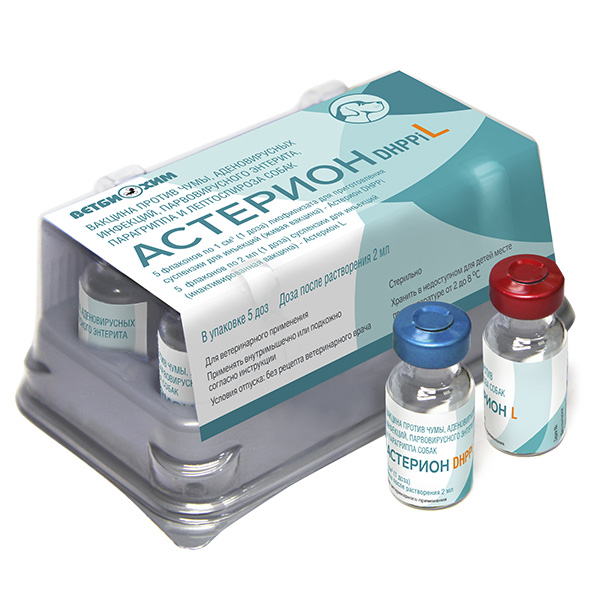 Вакцину Астерион DHPPiL применяют для защиты собак против чумы, аденовирусных инфекций, парвовирусного энтерита, парагриппа, лептоспироза собак.