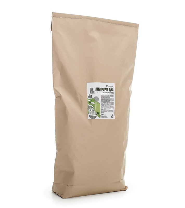 снижения микробной обсемененности помещений для животных и птиц патогенными бактериями, губительно воздействует на вирусы, а также на яйца гельминтов и личинки мух; Ациформ Дез обладает антигрибковым действием (подавляет спорообразующие формы, дрожжи и плесени).