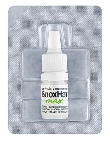 Ассортиментный ряд препарата БлохНэт разработан в зависимости от вида и веса животных. Капли разлиты во флаконы по 1 мл и упакованы в картонные коробочки.