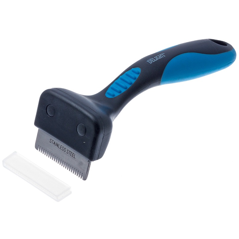 Служит для удаления отмершего подшерстка, предотвращает появление колтунов. Уменьшает линьку на 90%. Глубоко проникает в шерсть, не повреждая кожу и остевой волос, делает шерсть здоровой и блестящей.