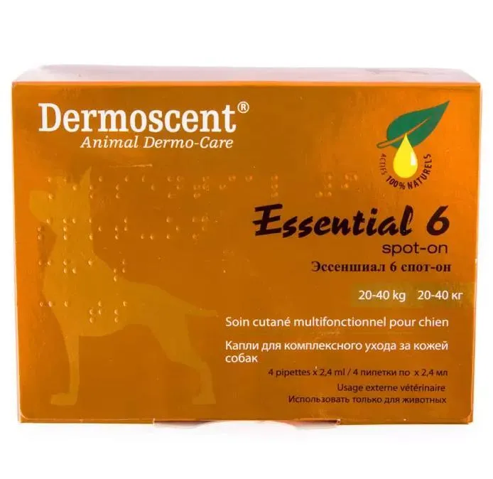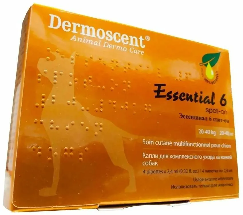 Эссеншиал Спот-он: капли для ухода за кожей для собак 20-40 кг, 2,4 мл (4 пип)