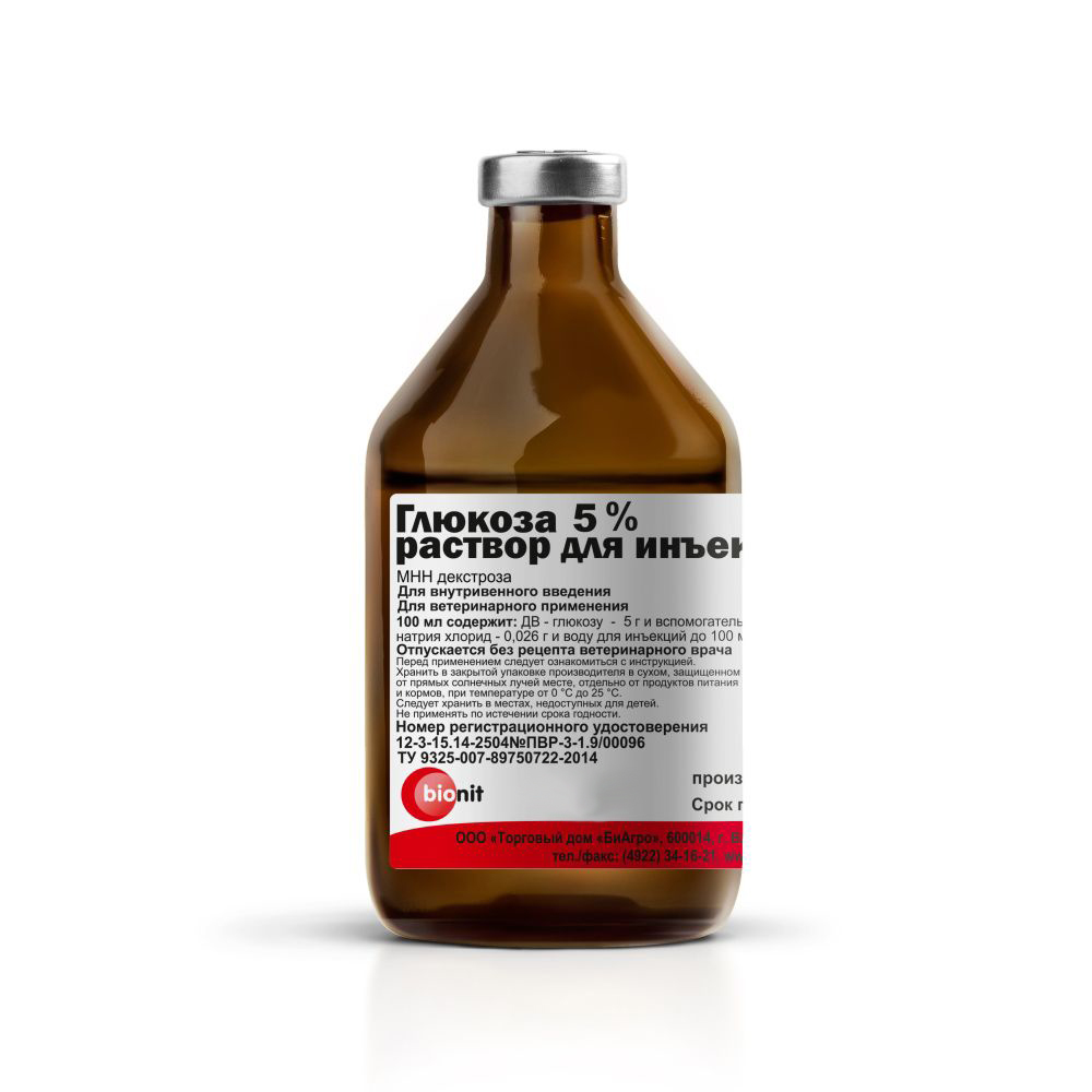 Глюкозу 5%, 10%, 25%, 40% раствор для инъекций применяют животным при больших потерях организмом жидкости (кровотечения, токсическая диспепсия), явлениях шока, интоксикациях, метритах, вагинитах, а также для растворения различных лекарственных препаратов.