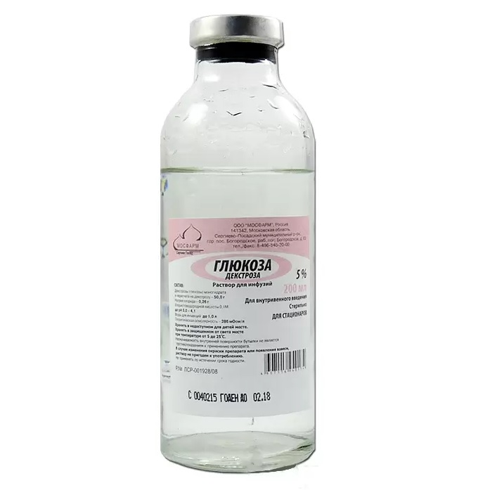 Раствор глюкозы 40 % — гипертонический. Представляет собой прозрачную, бесцветную или слегка желтоватую жидкость сладкую на вкус, рН 3,0-4,0. Расфасовывают по 100 мл, 200 мл и 400 мл в стеклянные флаконы.