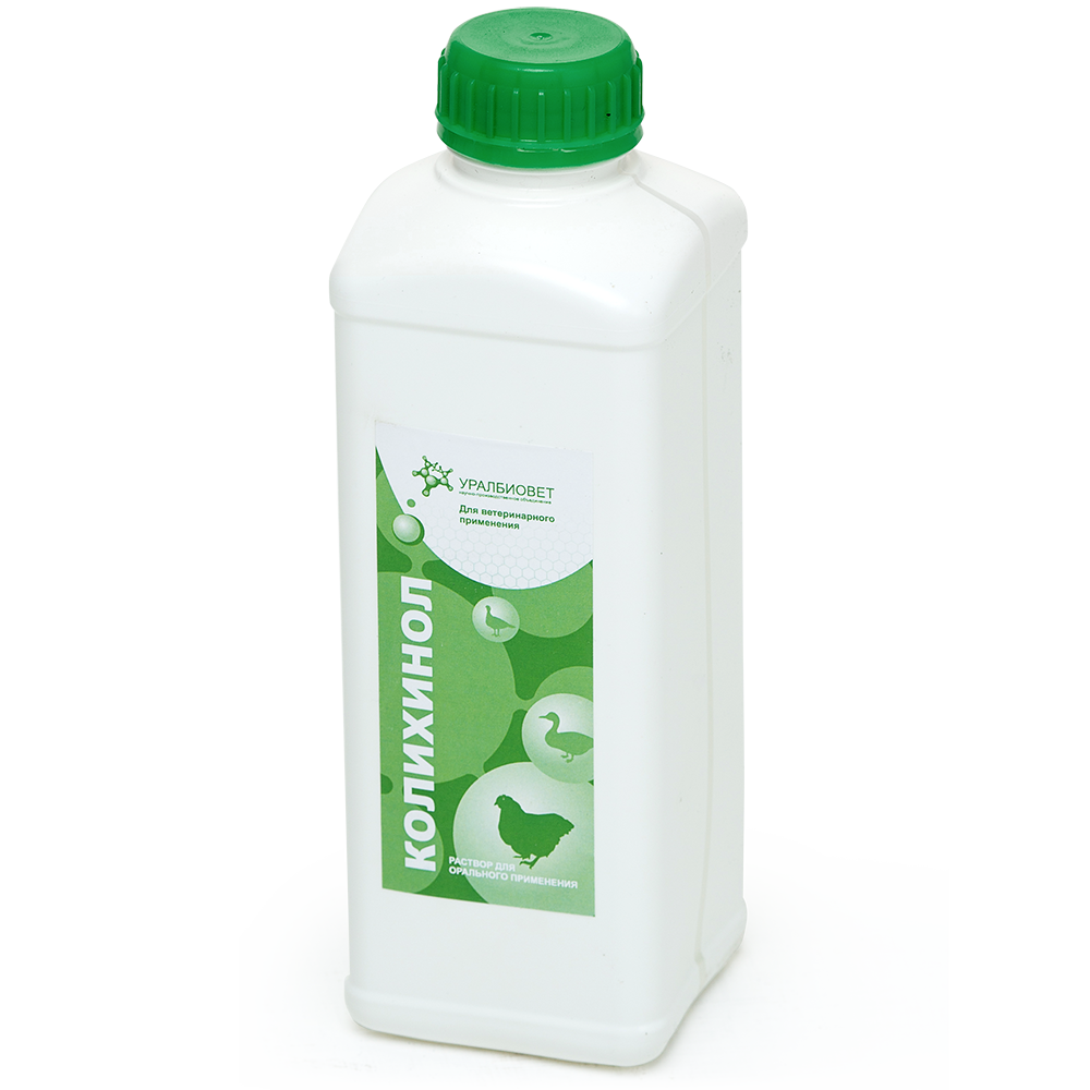 Показания к применению и дозировкаКолихинол оральный раствор рекомендуется птице для лечения колибактериоза, сальмонеллеза, пастереллеза, хронических респираторных заболеваниях, стрептококкозе, некротическом энтерите, гемофилезе, микоплазмозе, смешанных и вторичных инфекциях при вирусных болезнях, возбудители которых чувствительны к энрофлоксацину и колистину.