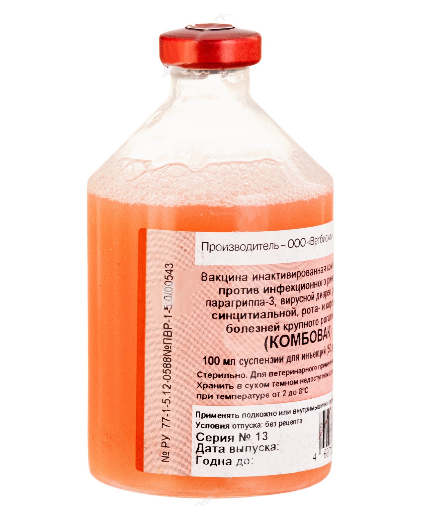 Вакцина представляет собой жидкость светло-красного цвета, с рыхлым белым осадком.