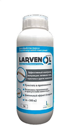 C-Метопрен, содержащийся в ларвициде «LARVENOL», является аналогом ювенильного гормона насекомого. Он заставляет «поверить» личинку, куколку или нимфу, что она еще не созрела, и что время метаморфозы во взрослую особь не наступило. C-Метопрен делает невозможным переход к последней стадии развития, то есть к появлению взрослой особи. Поскольку единственной стадией полового созревания является стадия взрослой особи, это предотвращает размножение двукрылых насекомых.