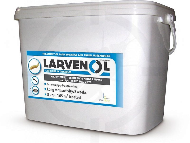 LARVENOL можно использовать на всех типах животноводческих комплексов. Дозировать 25г на м2 в зависимости от концентрации подстилки.
