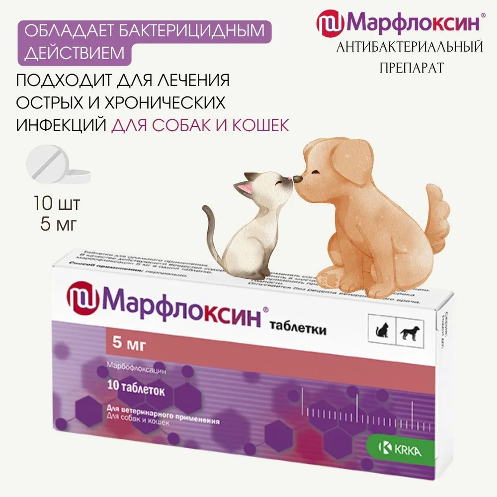 Марфлоксин (KRKA) 5мг антибактериальный препарат для собак и кошек, 10таб. (ЛИЦЕНЗИЯ)