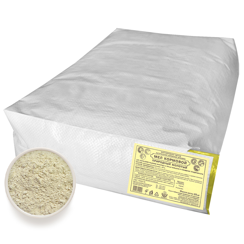 Мел кормовой - экологически чистая натуральная кормовая добавка для обогащения рациона птиц, коров, лошадей, коз и овец, свиней, домашних и диких животных. Благодаря высокому содержанию кальция:
