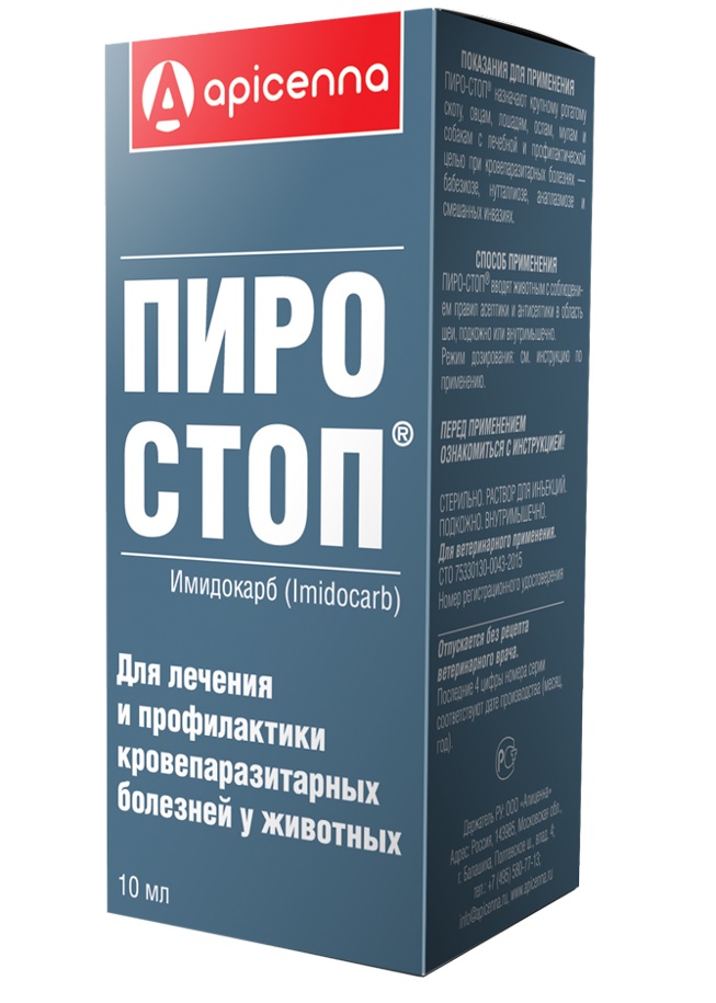 Пиро-стоп 10мл противокровепаразитарный заб. животных для инъекций (ЛИЦЕНЗИЯ)