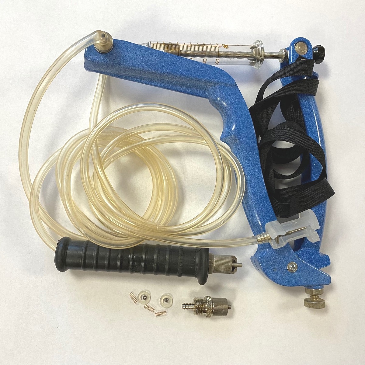 Прибор комплектуются двумя типами иглодержателя, которые легко меняются при использовании игл типа Рекорд, Луер, Луер-лок. Для смены иглодержателя необходимо открутить его из ручки по резьбе, снять шланг с одного типа, надеть на другой и закрутить по резьбе.