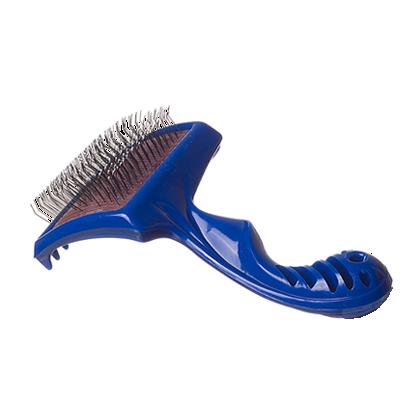 Пуходерка имеет частую тонкую металлическую щетину, удаляет старую шерсть из шерсти и подшерстка, стимулирует волосяные луковицы, придает шерсти здоровый вид, эргономическая ручка с упором под большой палец.