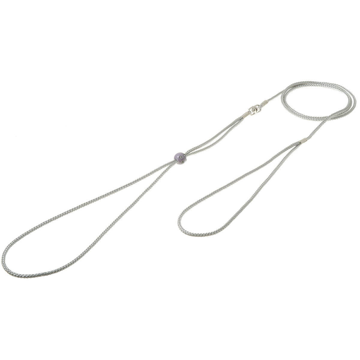 Предназначено для животных. Состоит из петли с фиксатором, вертлюга и поводка с ручкой. Самый распространенный вид выставочной аммуниции. Бусинка позволяет регулировать петлю и украшает изделие.