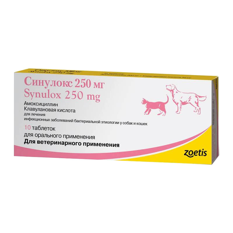 Синулокс применяют для лечения инфекционных заболеваний собак и кошек бактериальной этиологии, включая: - кожные заболевания (в том числе глубокую и поверхностную пиодерму); - инфекции мочевыводящих путей; - респираторные инфекции бактериальной этиологии (при вовлечении в инфекционный процесс как верхних, так и нижних дыхательных путей); - энтериты бактериальной этиологии.Противопоказания