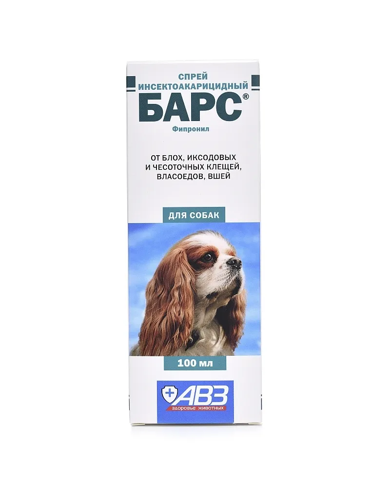 Спрей «Барс» эффективен против блох, вшей, волосовиков (власоедов), иксодовых и саркоптоидных клещей, паразитирующих на собаках и кошках. Препарат обладает системным и контактным действием, вызывая гибель паразитов сразу после их нападения на обработанное животное. Спрей имеет приятный запах и оказывает репеллентное действие.