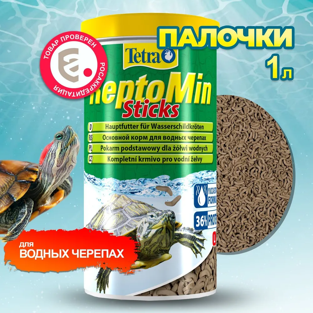 Плавающие палочки с витамином С для водяных и сухопутных черепах, тритонов, африканских лягушек и других водных рептилий. ReptoMin Floating Food Sticks - корм с высоким содержанием протеина, обогащённый минералами, которые важны для формирования панциря и костей.