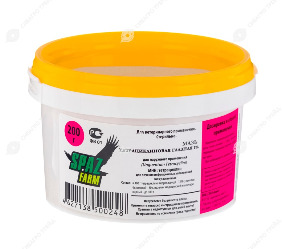 тетрациклин или тетрациклина гидрохлорид; вазелин медицинский или ветеринарный, ланолин.