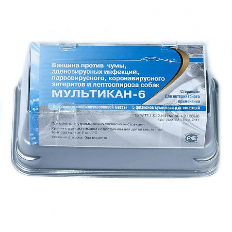 Показания. Вакцину Мультикан-6 применяют с целью профилактики чумы, аденовирусных инфекций, парвовирусного, коронавирусного энтерита и лептоспироза собак.