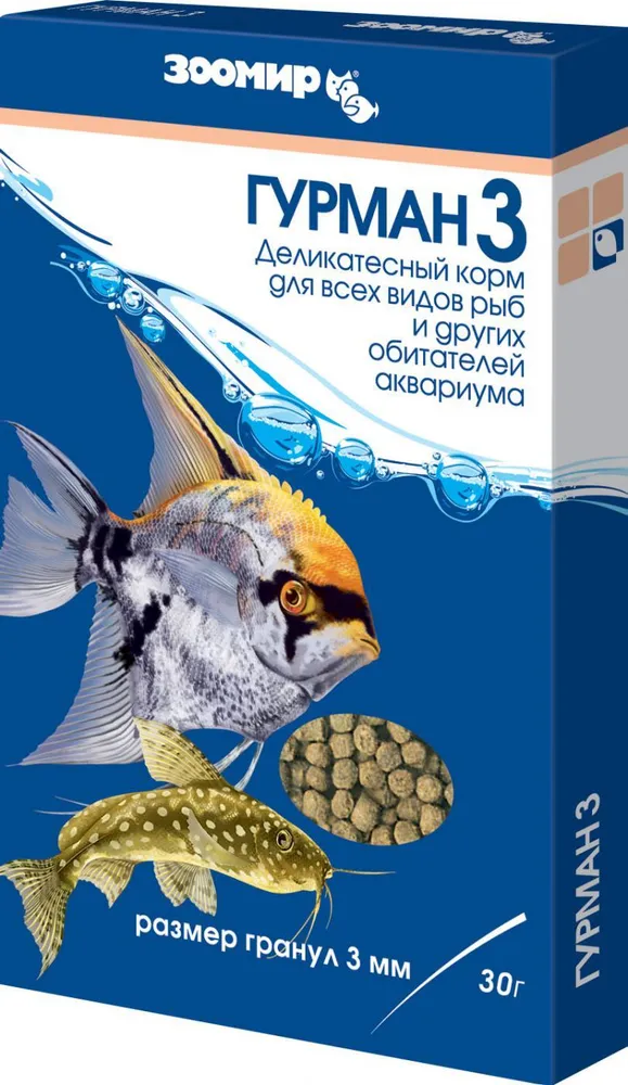 Зоомир 0,03кг Гурман-3 корм тонущие гранулы 3мм, деликатесный для рыб (коробка) (546)