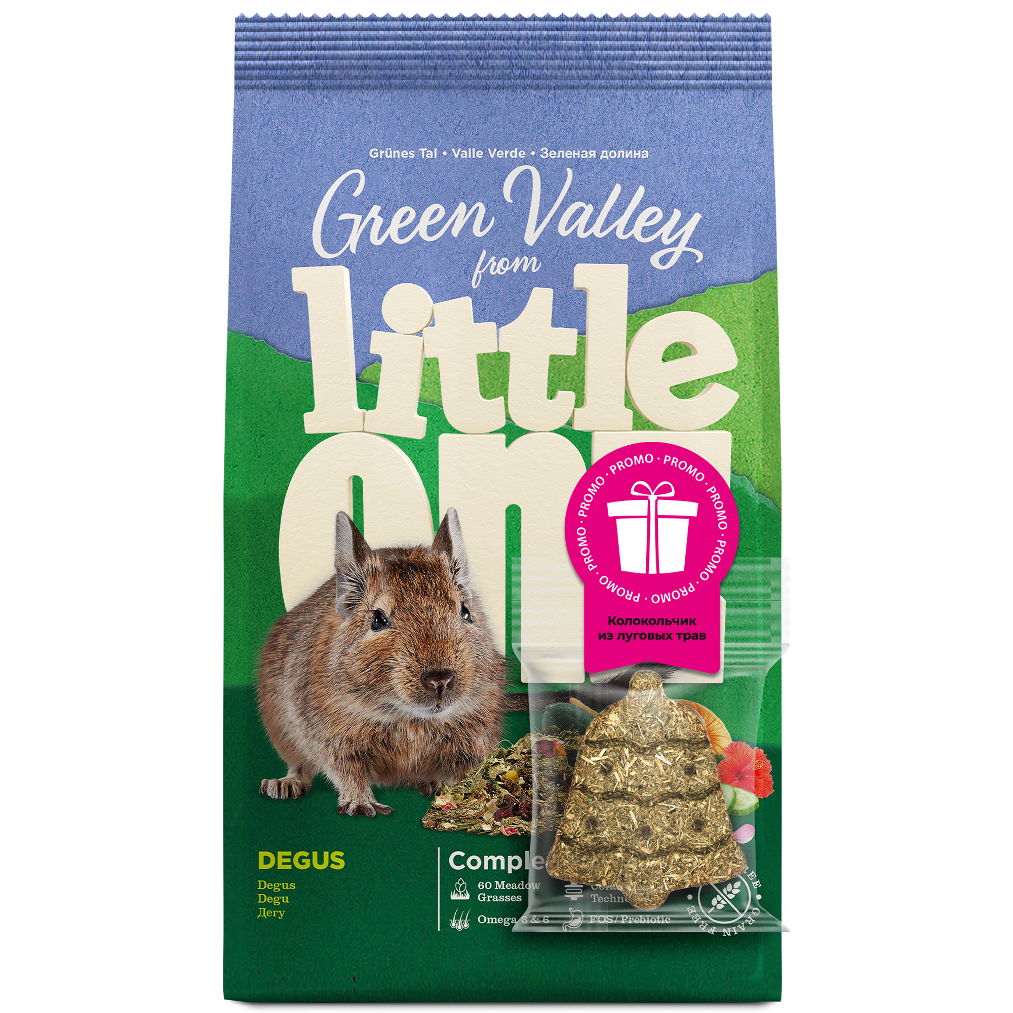 Little One ПРОМО корм Зеленая долина из разнотравья для дегу, 0,75к г + Колокольчик 0,024кг