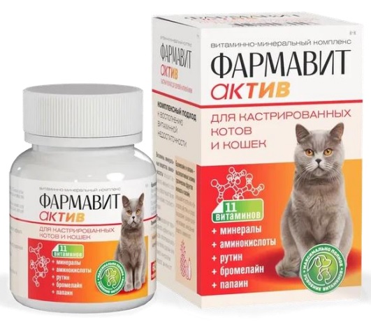 Фармавит Актив К-К 60таб. 0,03кг витаминно-минеральный комплекс для кастрированных котов и кошек