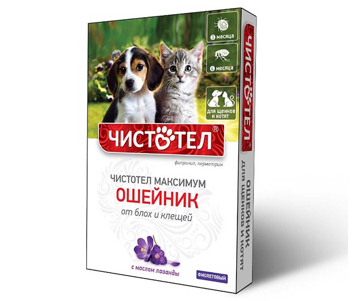 Ошейник (Чистотел) Максимум (4мес), 50см от блох и клещей с маслом лаванды для щенков и котят (ЛИЦЕНЗИЯ)