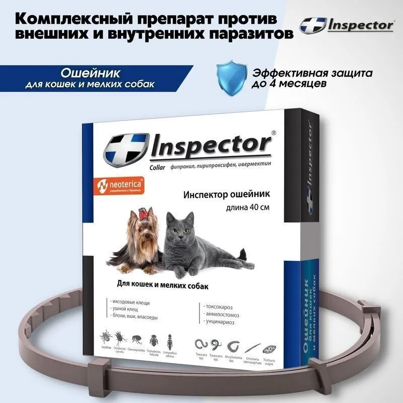 Ошейник (Inspector) (4мес), 40см от блох, клещей и глистов для кошек и мелких собак (ЛИЦЕНЗИЯ)