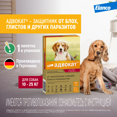 Адвокат капли (1пип) от чесоточных клещей, блох и гельминтов для собак 10-25кг