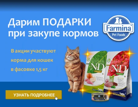 С 5 февраля по 31 марта 2026 года при покупке любого сухого корма Farmina для кошек весом 1,5 кг вы получаете в ПОДАРОК аппетитные консервы Farmina Matisse весом 85 гр!